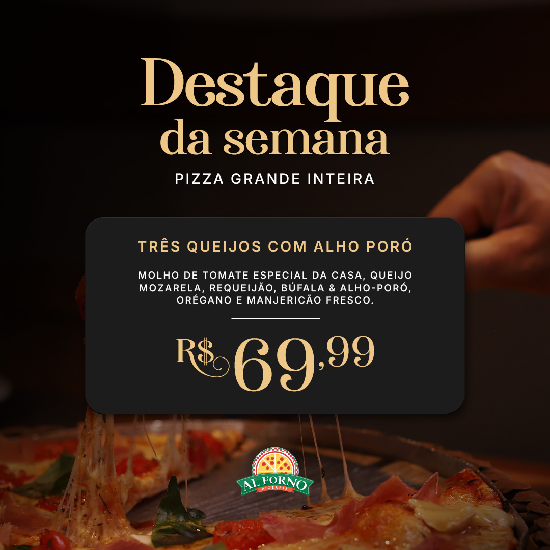 Pizza Grande composta por 35cm e 8 Fatias! Molho de tomate especial da casa, mozarela, requeijão, búfala, orégano e manjericão fresco.